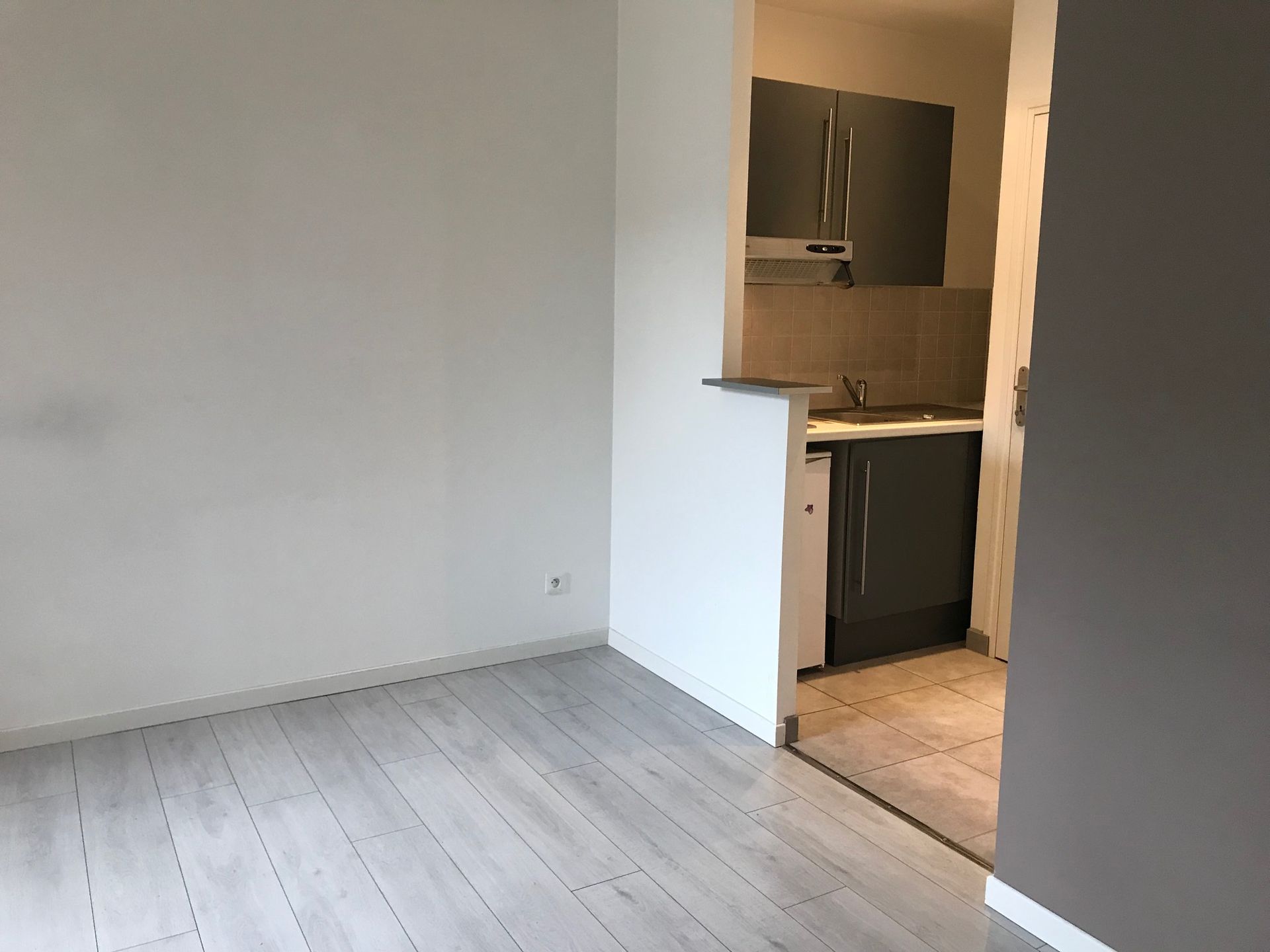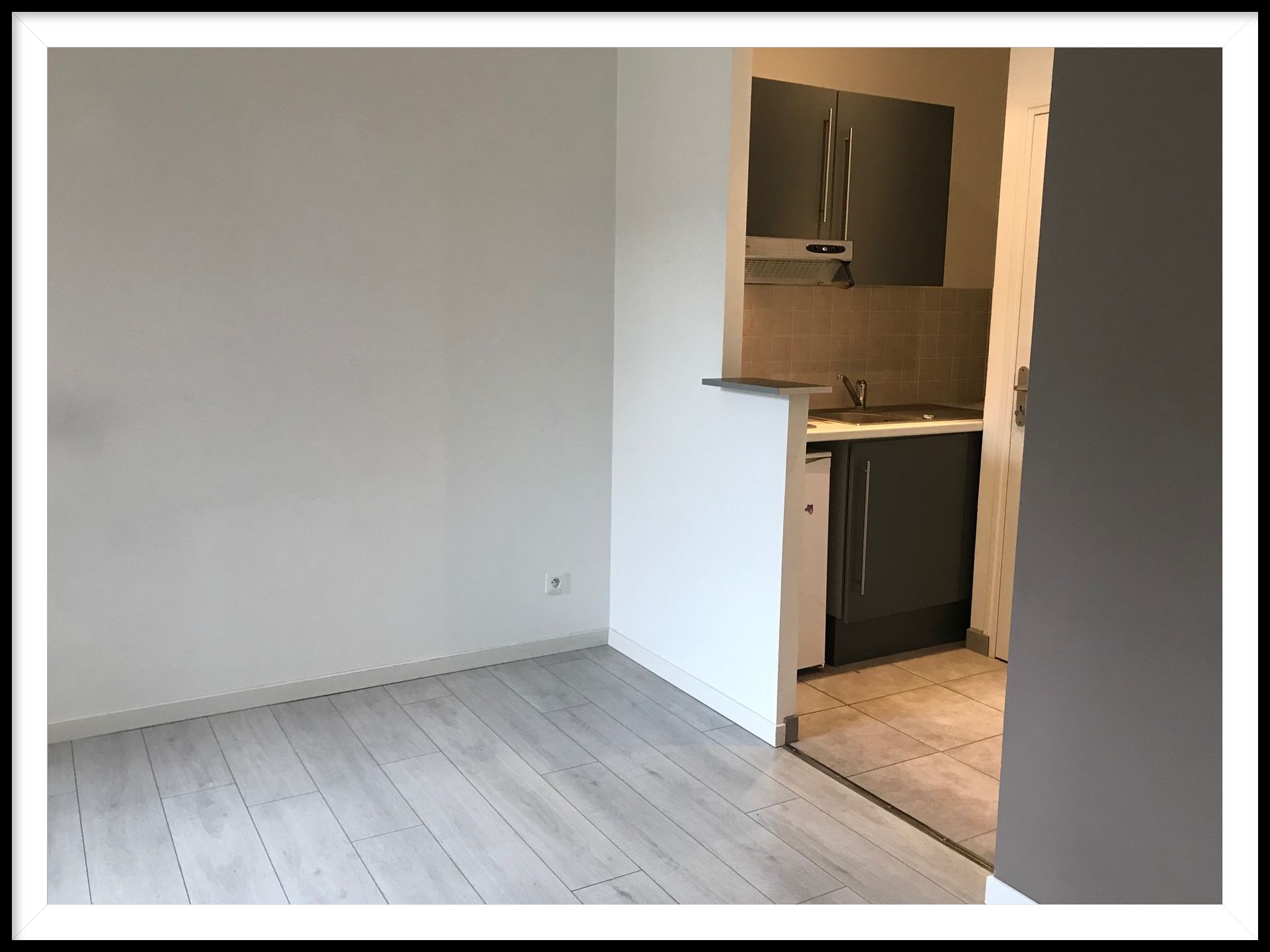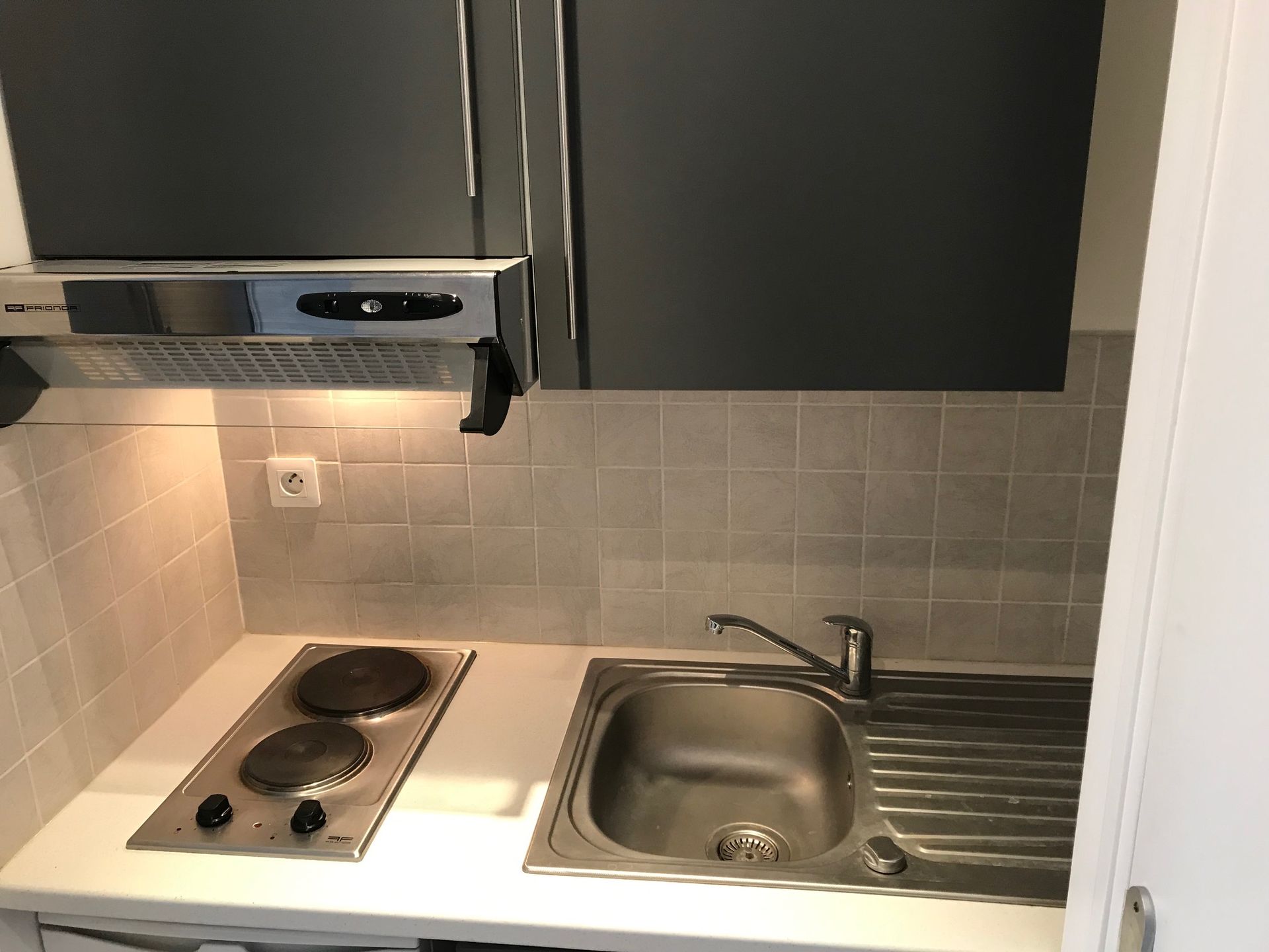 L'appartement est composé d'une pièce de vie avec coin cuisine équipée (meubles hauts et bas, plaques de cuisson, , évier, réfrigérateur, hotte) et d'une salle de bain (baignoire, vasque encastrée, miroir, WC)
